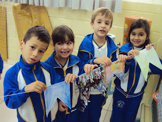 os alunos do infantil V-B da professora Juliana começaram o mês de junho com muita diversão. Além de provarem comidas típicas de festa junina, assistirem filmes, ouvirem histórias e conversarem bastante sobre o tema, a turminha enfeitou a sala de aula com as bandeirinhas que fizeram com suas famílias, trazendo para o ambiente muita cor, criatividade e um toque de afeto.
