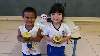 Percebemos que algumas crianças não conheciam ou nunca haviam experimentado essa fruta. Então, aproveitamos para fazer uma deliciosa vitamina de abacate para as crianças saborearem.